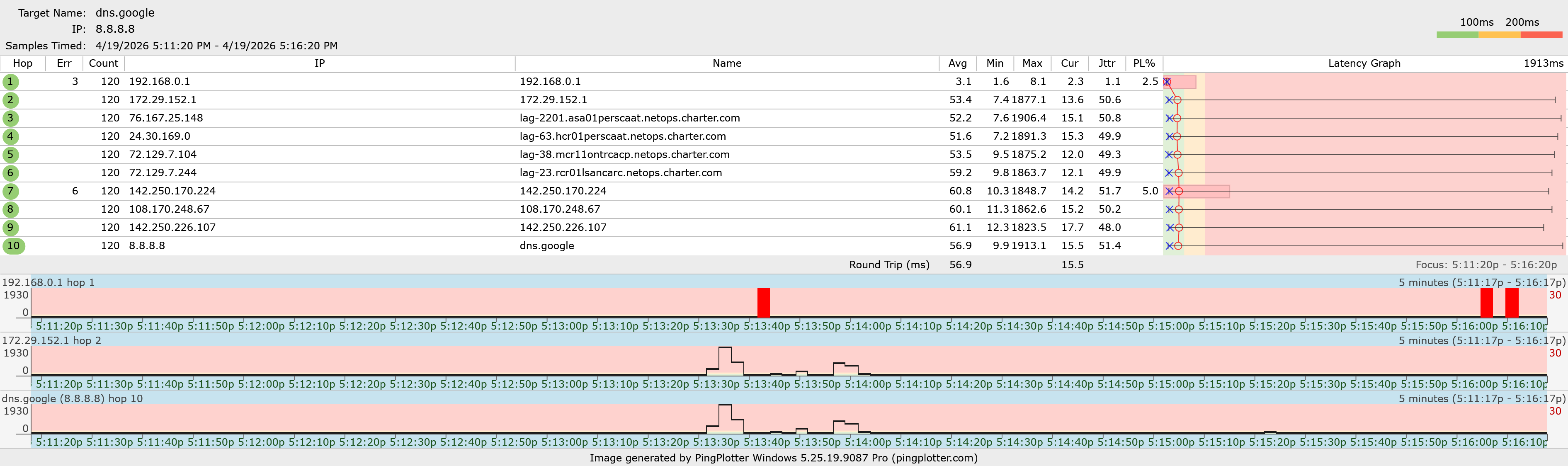 Match your PingPlotter results against a list of frequently encountered issues.